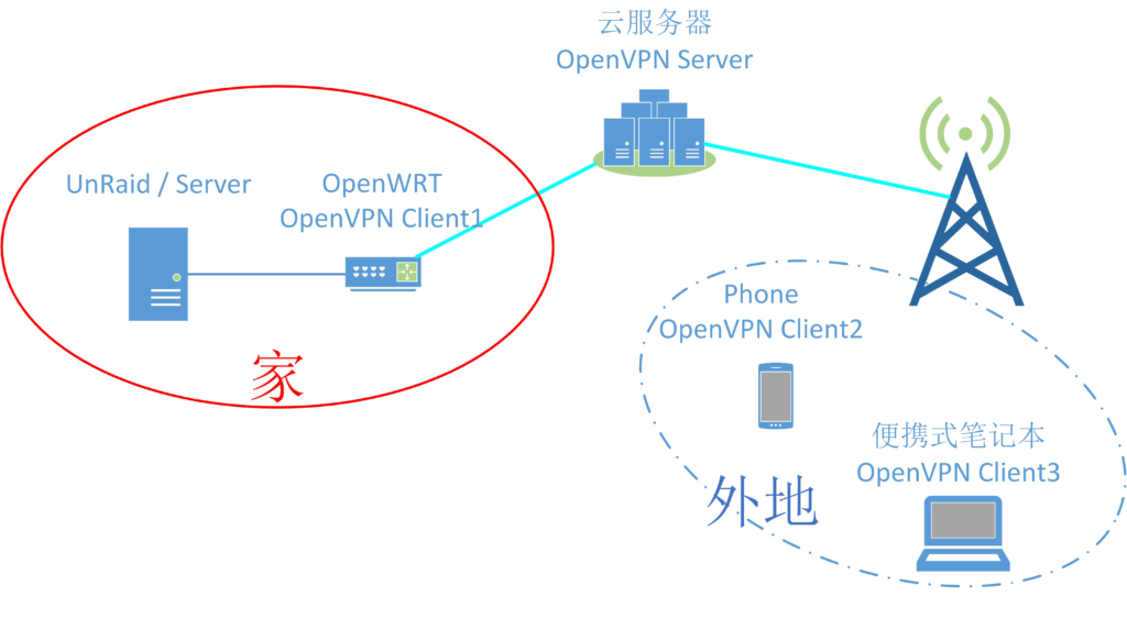 3、远程使用的OpenVPN Client的客户端,比如手机、电脑